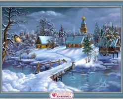 Алмазная мозаика «Зима в деревне»