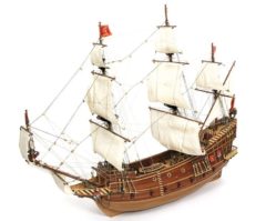 Модель корабля из дерева фирмы OcCre имеет наборный корпус, собираемый из вырезанных лазером деталей, который имеет двойную обшивку. В набор входят аккуратные мелкие детали: блоки и юферсы из самшита, рым-болты, рым и нагеля из латуни, металлические брашпиль и шлюпка, нити трех диаметров и т.д. Вооружение модели корабля состоит из восьми пушек. Дан полный комплект готовых парусов. Завершают модель основание и табличка с названием. Для этой модели прилагается перевод инструкции на русский язык с дополнениями и комментариями.