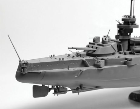 Линкор советского Балтийского флота «Марат» носил это имя с 1921 по 1943 год. На воду он был спущен под именем «Петропавловск» в 1914 году, став третьим линейным кораблем типа «Севастополь». Модель представляет линкор в том виде, какой он имел в августе 1941 г. «Марат» принимал участие в советско-финской войне 1939 года, своей артиллерией поддерживая сухопутные войска. Корабль оборонял Ленинград в годы Великой Отечественной.